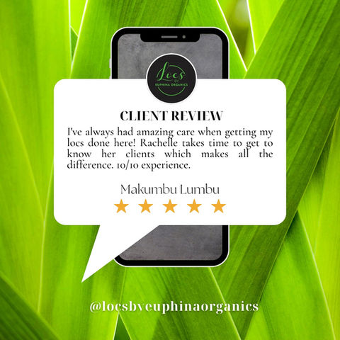Locs By Euphina Organics started in 2012 when owner and founder Euphina Rachelle started her own loc journey. After getting her locs started she found it hard to find someone to maintain her own locs so she learned to do it herself and on other friends and family members. When she was a child she always loved twisting hair from single twists to flat twists.